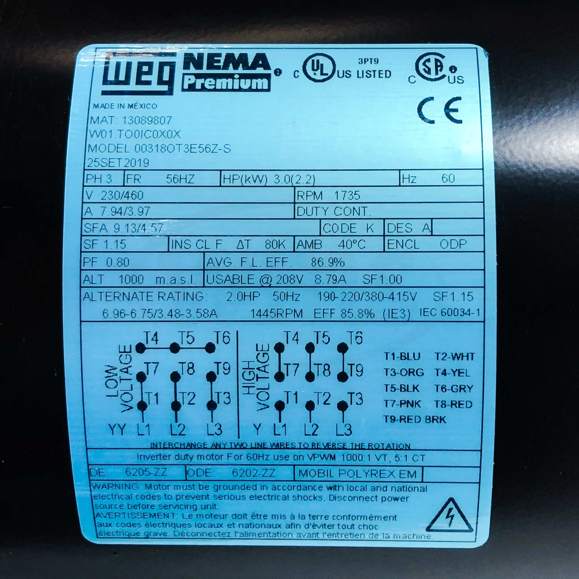00318OT3E56Z-S WEG 3HP General Purpose Electric Motor, 1800RPM