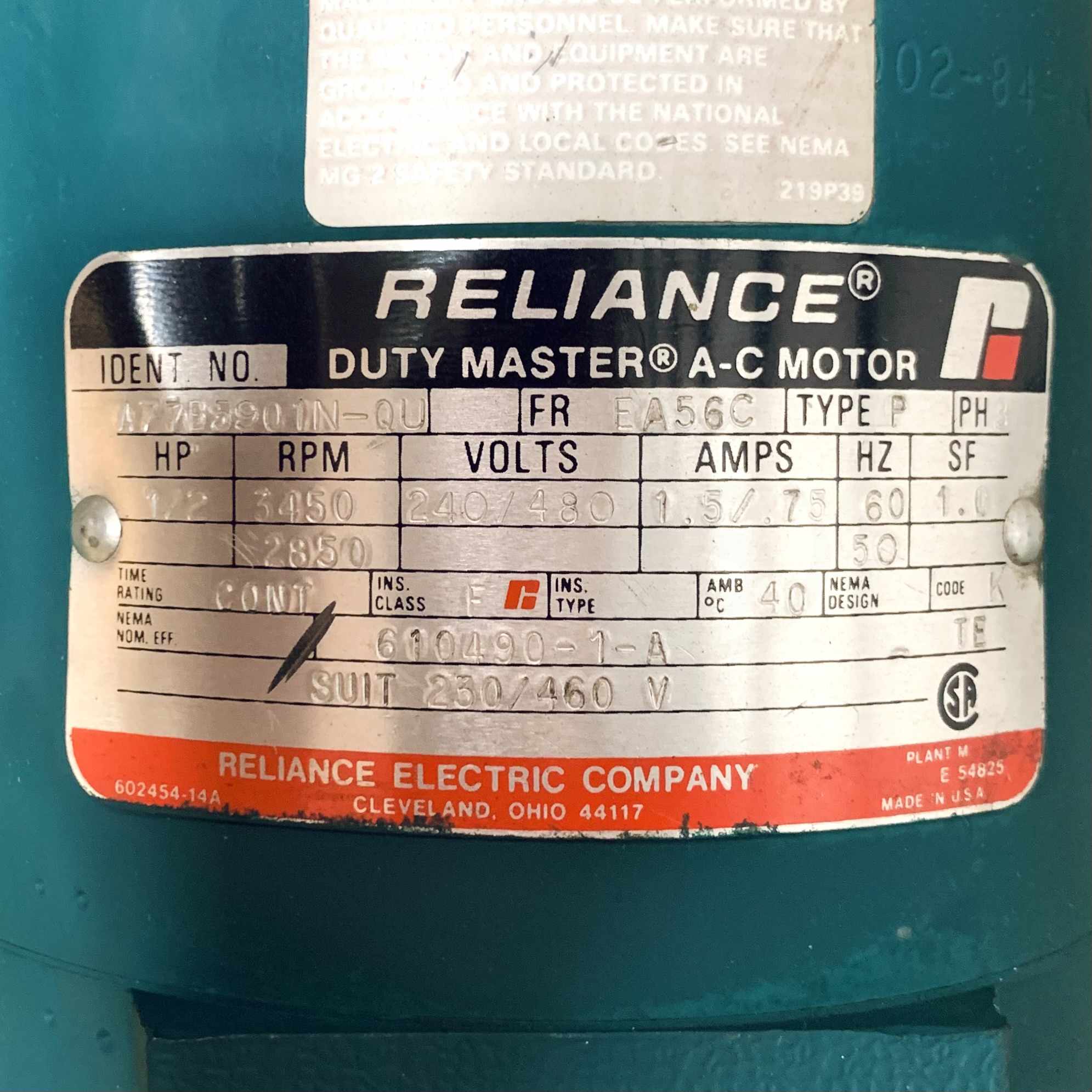 A77B5901N-QU Reliance Duty-Master A-C Motor: