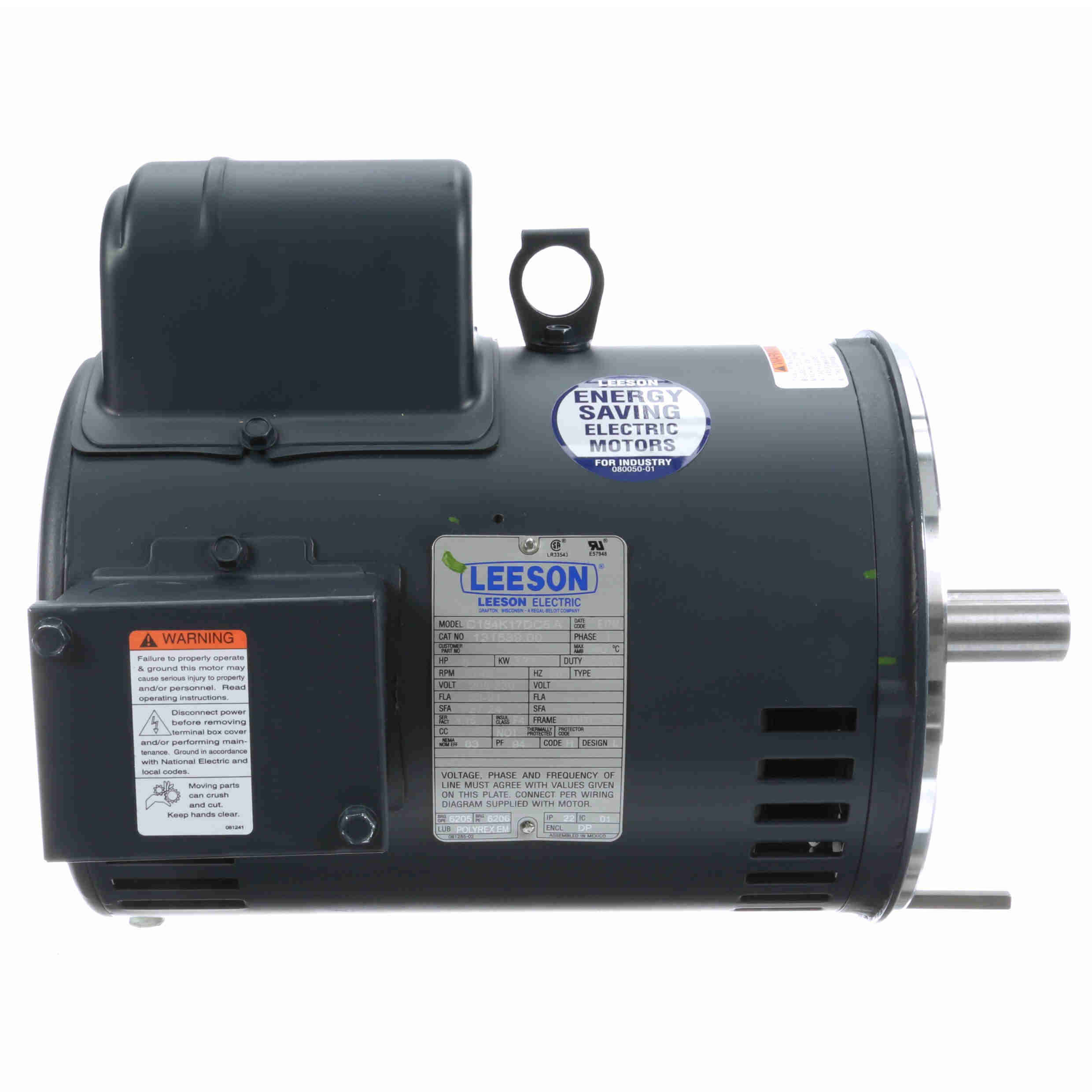 DP, 184TC Frame, 208-230VAC Single Phase 60Hz, C184K17DC6A, C-Face less Base, Rolled Steel, 1-1/8" Shaft