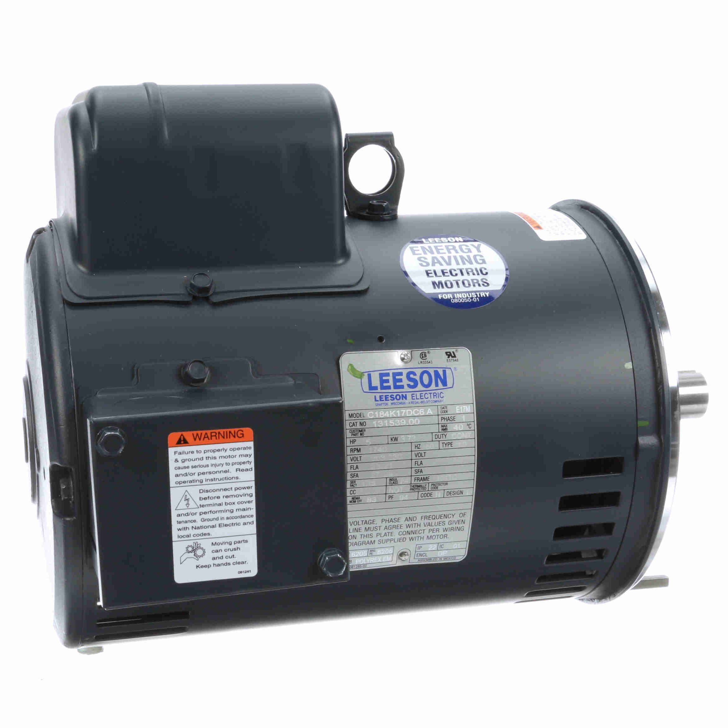 Part Description :5HP..1740RPM.184.DP./208-230V.1PH.60HZ.CONT.NOT.40C.1.15SF.C FACE.GENERAL PURPOSE.C184K17DC6ACategory :Open Drip Proof (ODP)