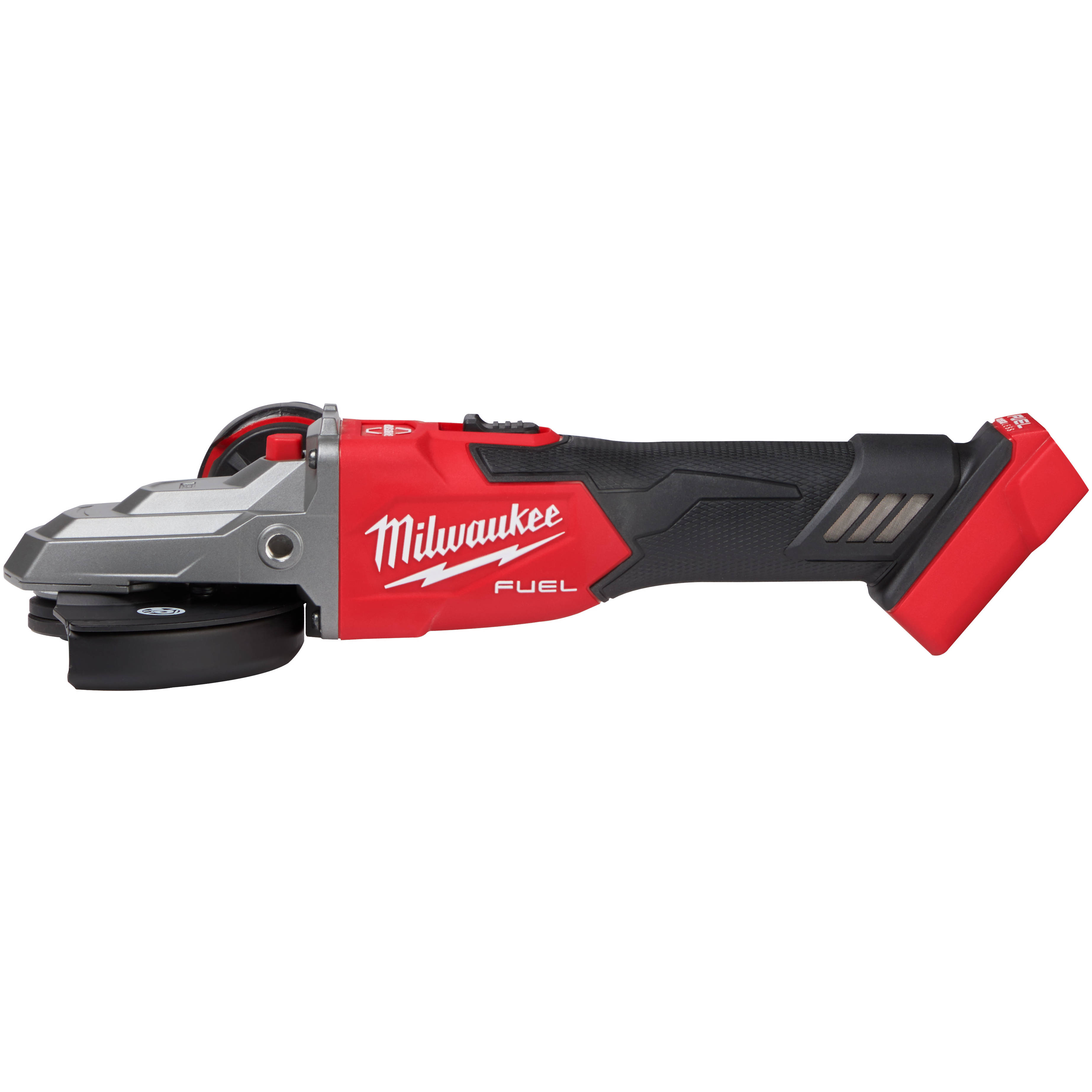 Milwaukee's M18 FUEL™ 5" Flathead Braking Angle Grinder with Slide Switch Lock-On is the newest addition to Milwaukee's cordless angle grinder lineup. Generating 11A corded power, a low profile for more access, and RAPIDSTOP™ Brake offers enhanced safety. The POWERSTATE™ Brushless Motor delivers 8,500 RPM and maximum sustained power to complete the toughest grinding and cutting applications, allowing you to push your battery-powered grinders harder and longer than ever before. REDLINK PLUS™ Intelligence ensures unmated levels of performance, protection, and compatibility. The M18™ REDLITHIUM™ HIGH OUTPUT™ XC6.0 Batteries (not included) deliver 50% more power while running 50% cooler than Milwaukee's M18™ REDLITHIUM™ XC Batteries. The low-profile, flathead design allows for greater accessibility to tight spaces. The MILWAUKEE® M18 FUEL™ 5" Flathead Braking Angle Grinder provides enhanced performance, run-time, and accessibility.