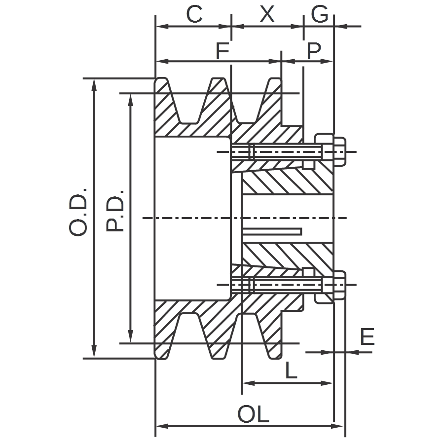 2BK45H 4.25" "H" Style BK Double Groove V-Pulley