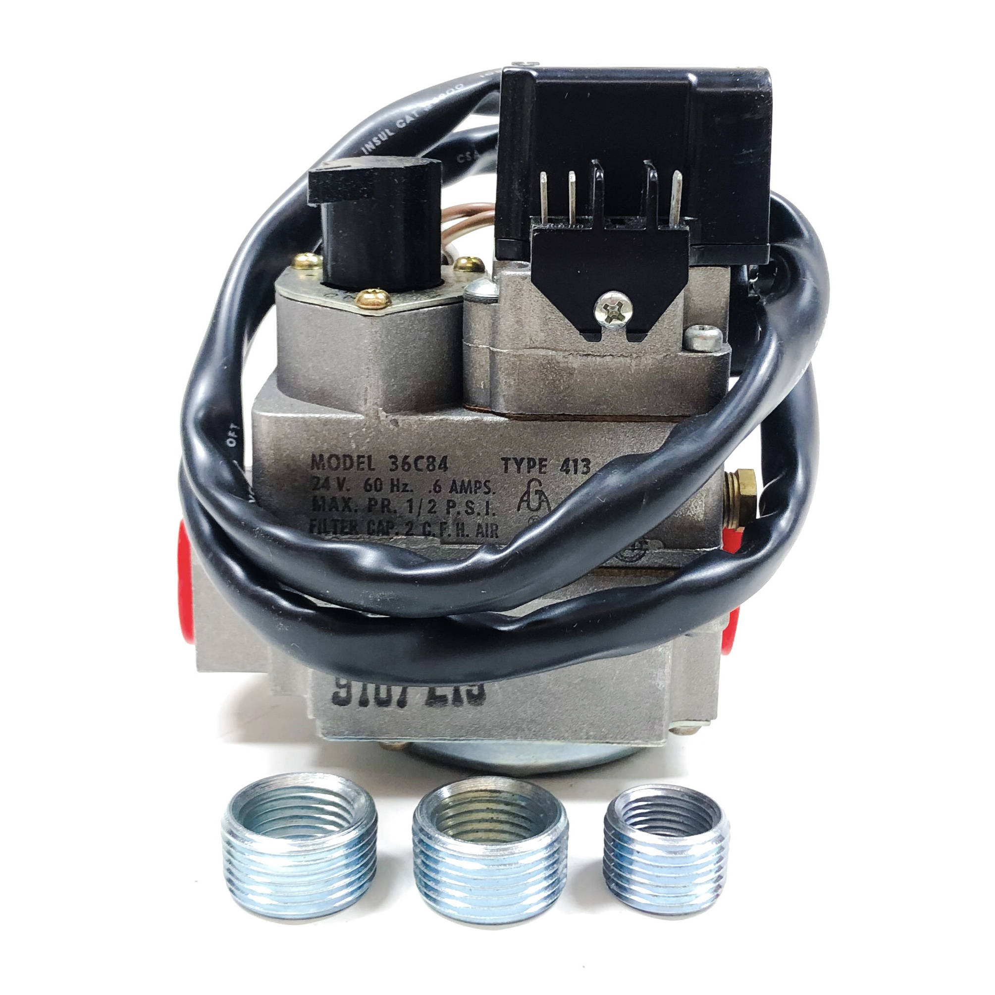 24v. 60 Hz. .6 Amps Max. PR. 1/2 P.S.I. Filter Cap. 2 C.F.H. Air Reg. Range 2.5" W. C. To %.0" W.C.