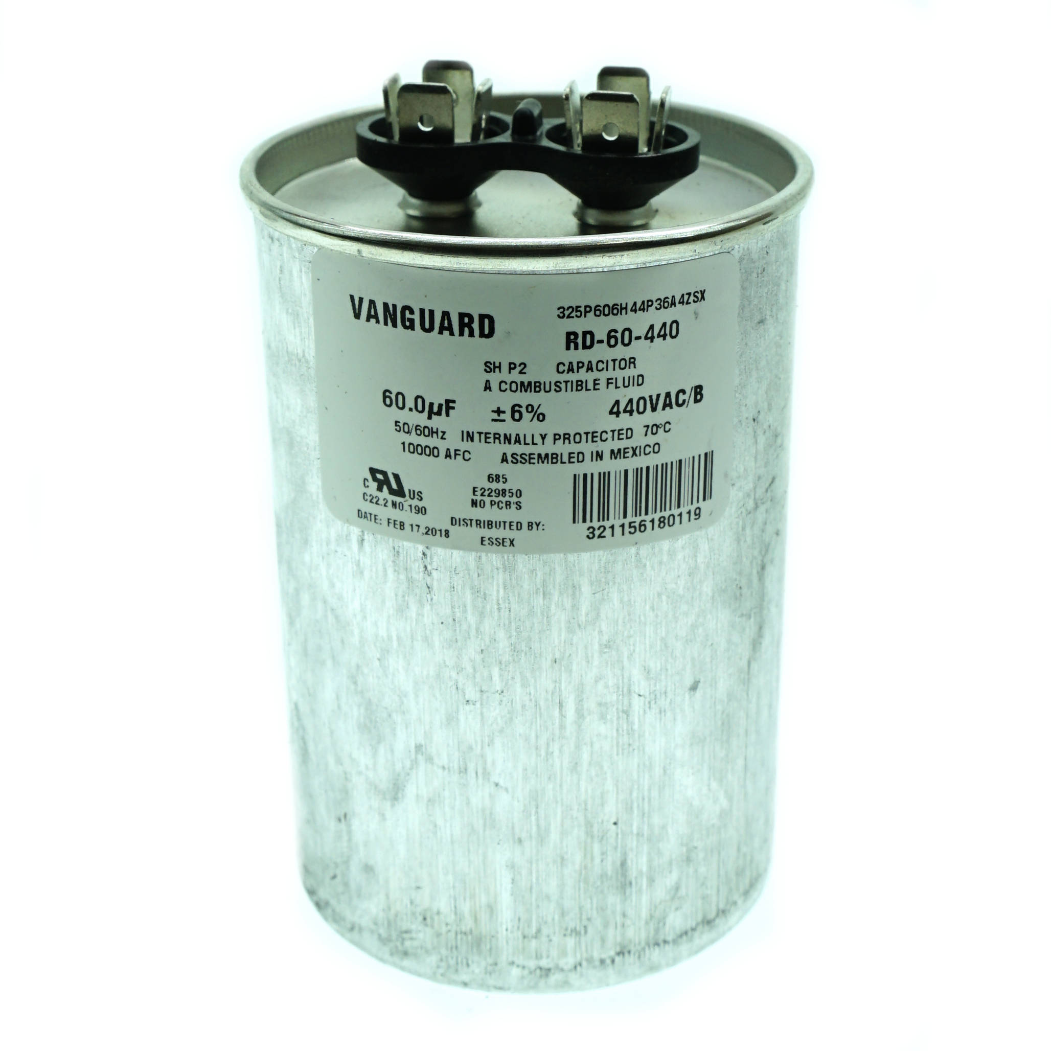 RD-60-440 Vanguard Run Capacitor, 440 VAC, 60 uF50-60Hz, 10,000AFC, Internally Protected, 70°CAvailable Stock: 3MFG: Vanguard CapacitorsRD-60-440 $28.50 / Each Details...