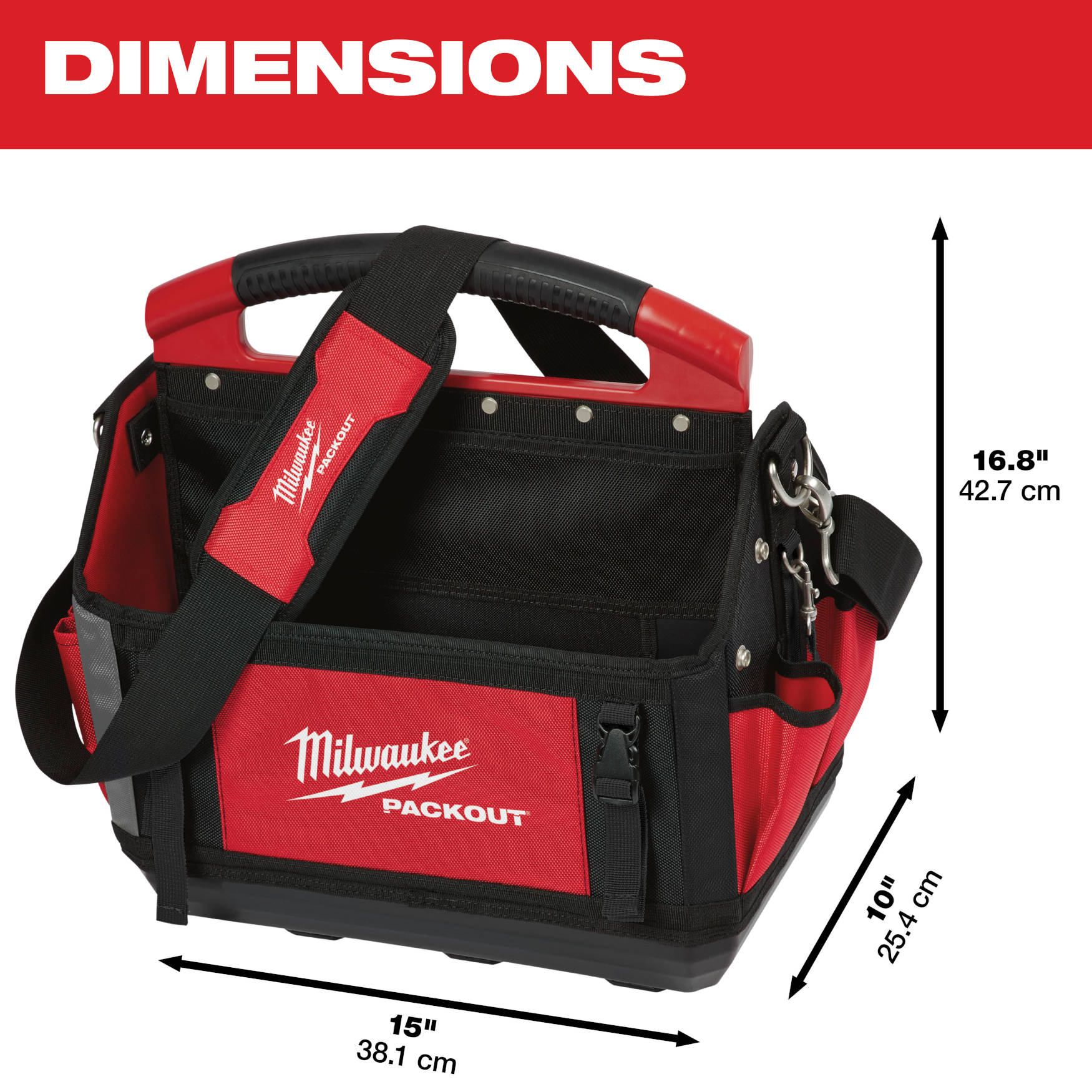 The Milwaukee PACKOUT™ modular storage system is the industry's most durable and versatile storage system. The 15" PACKOUT™ tote features an impact-resistant molded base that connects with all other PACKOUT™ system components via integrated locking cleats. Milwaukee constructed the durable tote with 1680D ballistic material and all-metal hardware so it can withstand harsh jobsite environments. The 15" storage tote features 31 pockets, including two zippered pockets, to organize your tools and accessories for easy access and visibility. Milwaukee's PACKOUT™ modular storage allows you to customize and build your own storage system to easily transport and organize your tools and accessories.