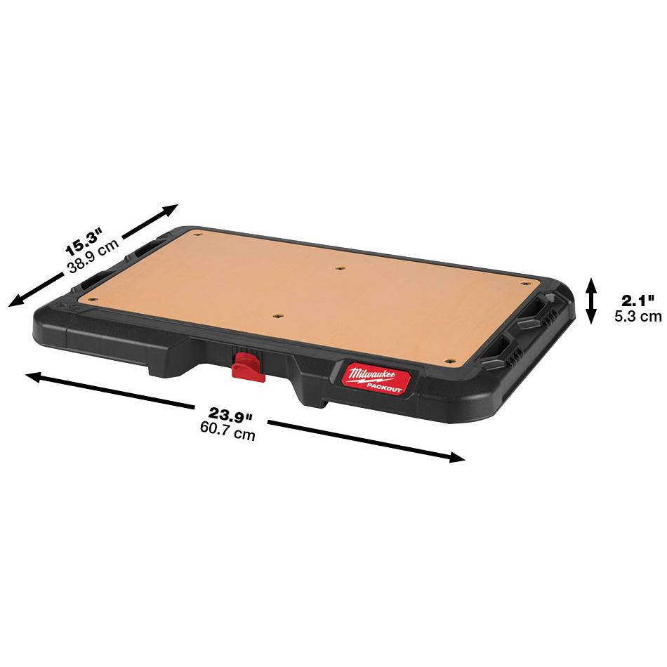 Milwaukee's PACKOUT™ Customizable Work Top is constructed with impact-resistant polymers and 1/2” marine grade wood top that provides you with a durable, portable work surface for assembly and writing tasks. As part of Milwaukee's PACKOUT™ Modular Storage, the worktop allows you to customize your storage system for easy transportation and organization of tools and accessories. The customizable worktop has a 50 lb weight capacity and a fastener-ready design, which allows you to attach vises, chargers, and a variety of other items to the top of your PACKOUT™ stack for easy and secure transport. The MILWAUKEE® PACKOUT™ Modular Storage System is the industry's most durable and versatile storage system.
