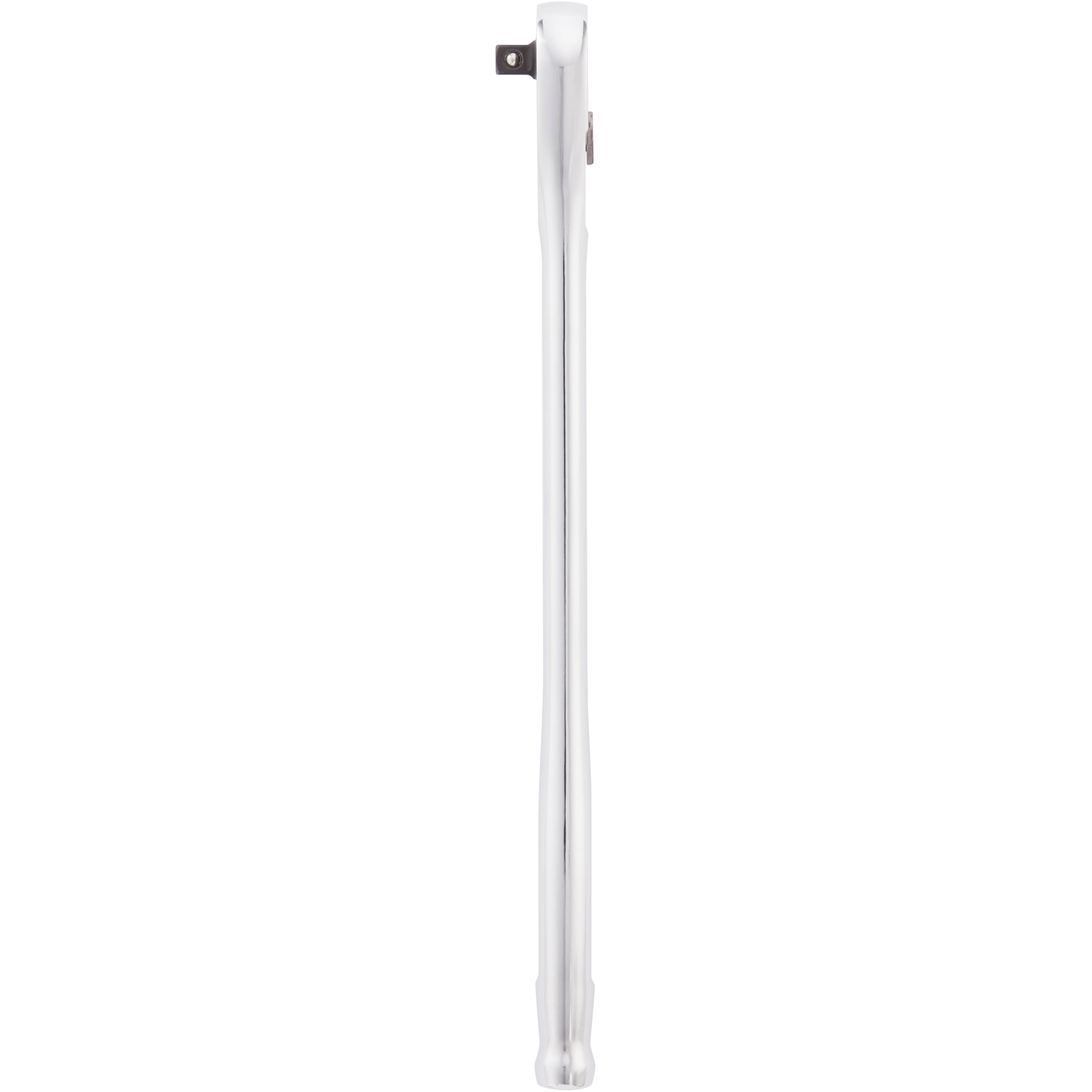 Milwaukee's 3/8" Drive 12" Ratchet offers 4° of arc swing, allowing access to work in tighter spaces. The extended handle length provides you with increased leverage for stubborn nuts and bolts with a slim profile design and a flush directional lever for better accessibility. The all-chrome finish provides the MILWAUKEE® extended reach ratchet with easy-cleaning. This ratchet is backed by our Mechanics Hand Tools Lifetime Guarantee.