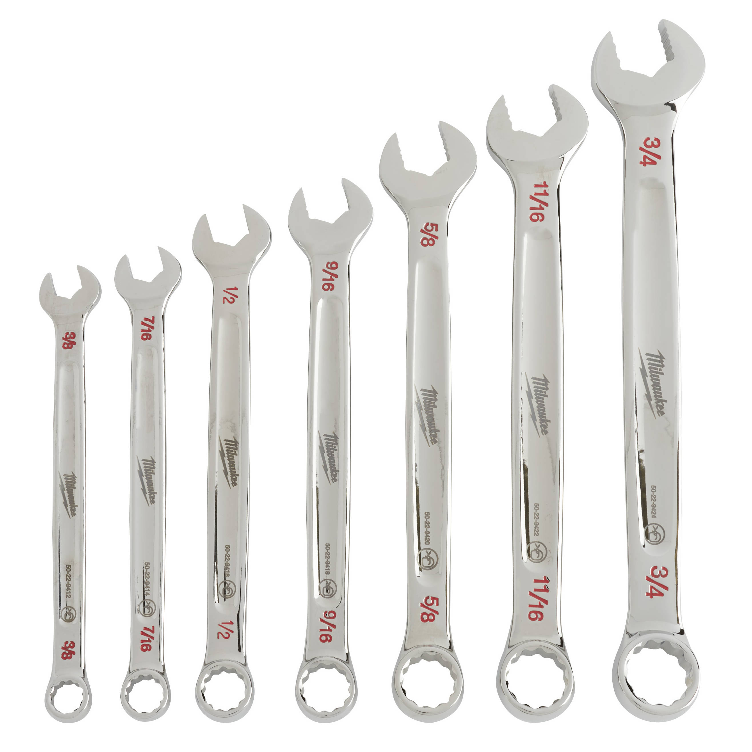 Milwaukee has designed these Combination Wrenches from the ground up, delivering maximum torque and ultimate user comfort. The MAX BITE™ Open-End Grip improves the wrench's grip on nuts and bolts, and the geometry reduces rounding and stripping. MAX BITE™ offers 25% More Torque than competitive wrench designs. The Comfortable I-Beam Handle Design allows superior user comfort, even while applying high torque. Milwaukee wrenches feature Ink-Filled Size Labels for easy size identification, and quick distinction between SAE and metric sets. The 7 Piece kit come in a portable, locking storage tray, offering organization both on and off the jobsite. Standing behind their products, Milwaukee offers a Lifetime Guarantee on all of Milwaukee's Combination Wrench Sets.