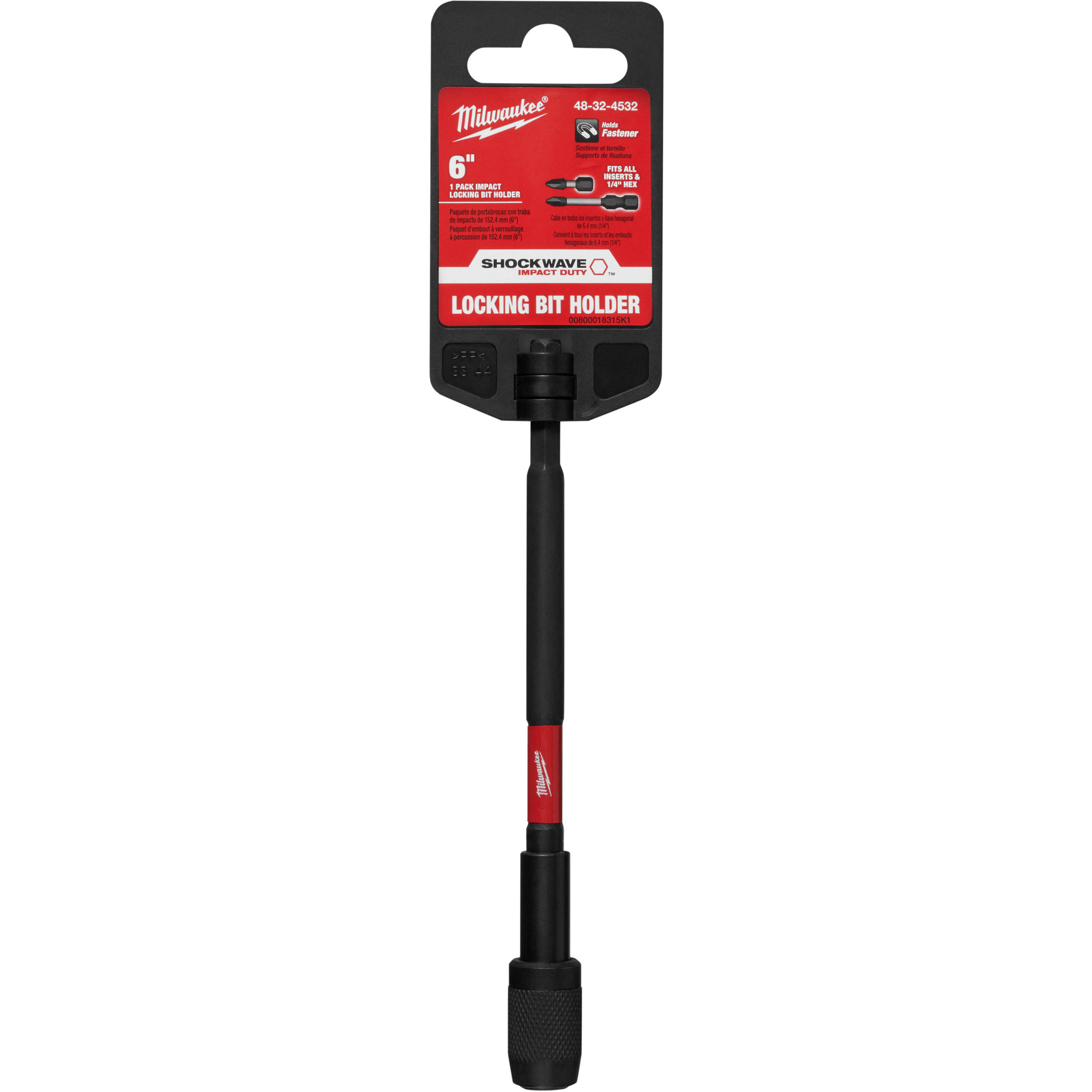 The Milwaukee Locking Bit Holders are engineered to be the most durable, strongest locking bit holders on the market. The intuitive auto-locking design fits all inserts and 1/4" hex bits and the small-profile quick release collar allows for easy one-handed bit tip changes. The MILWAUKEE® SHOCKWAVE™ Impact Duty™ locking bit holders feature two magnets to maximize magnetic transfer and holding power to the fastener and prevents drops. Each Milwaukee bit holder features an optimized Shockzone™ geometry to provide up to 30x longer life and absorb 3x more torque to prevent breakage.