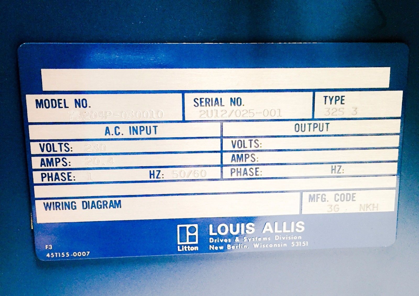 73204P-030010 Louis Allis Saber 3200 DC Static Drive, 230 Volts, 1 Phase