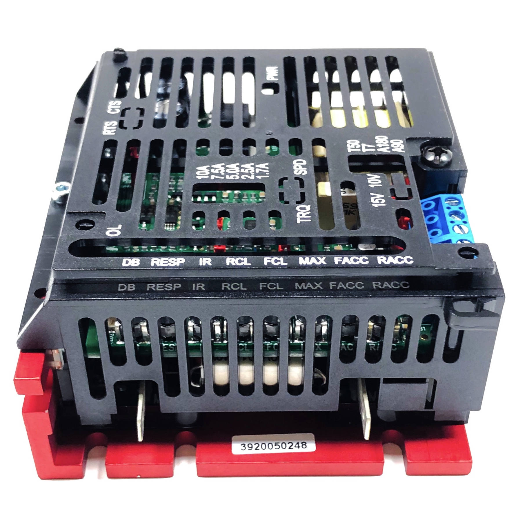 An important feature of the drive is the factory-calibrated, built-in, selectable motor current jumper. It eliminates the need to recalibrate IR Comp and Current Limit for most applications.