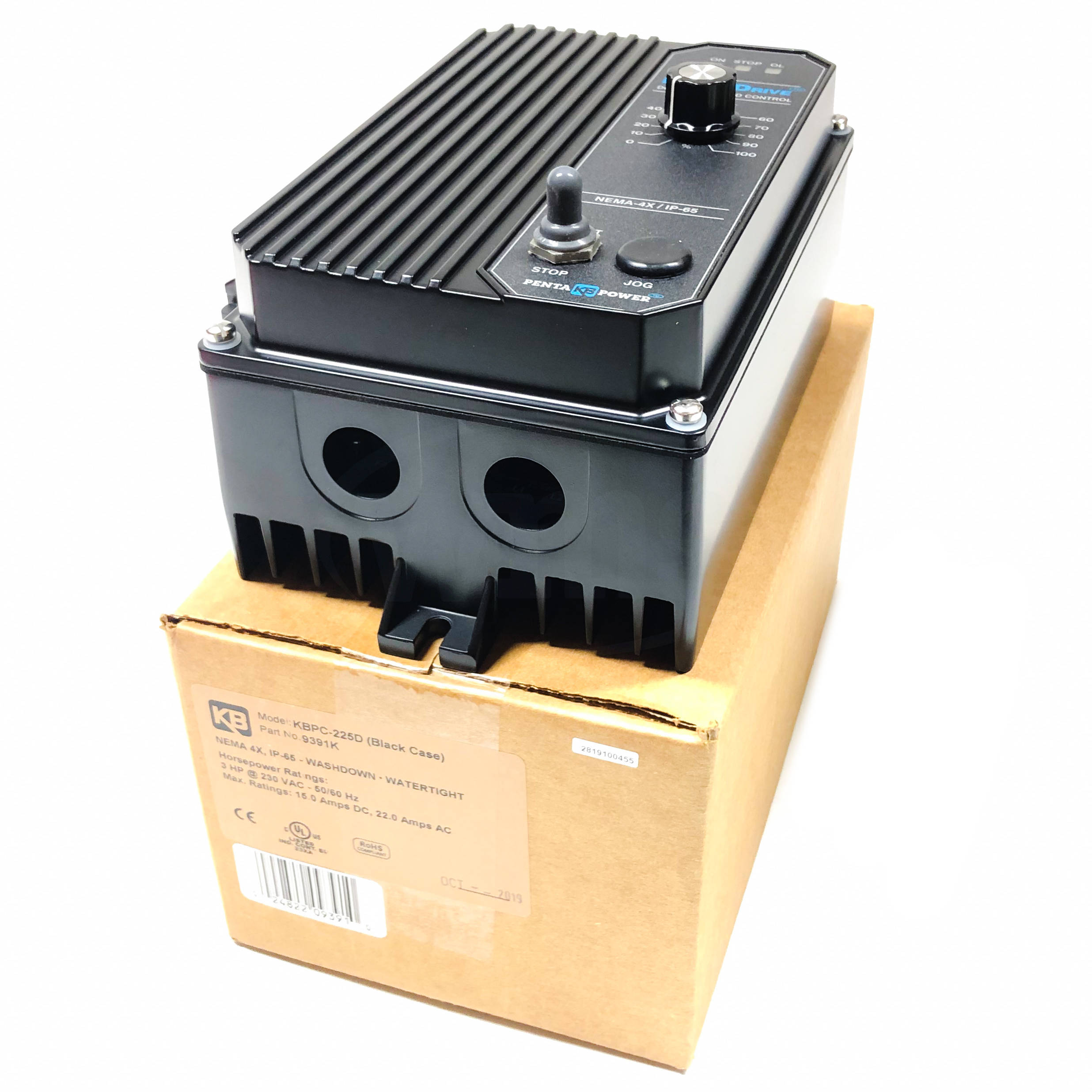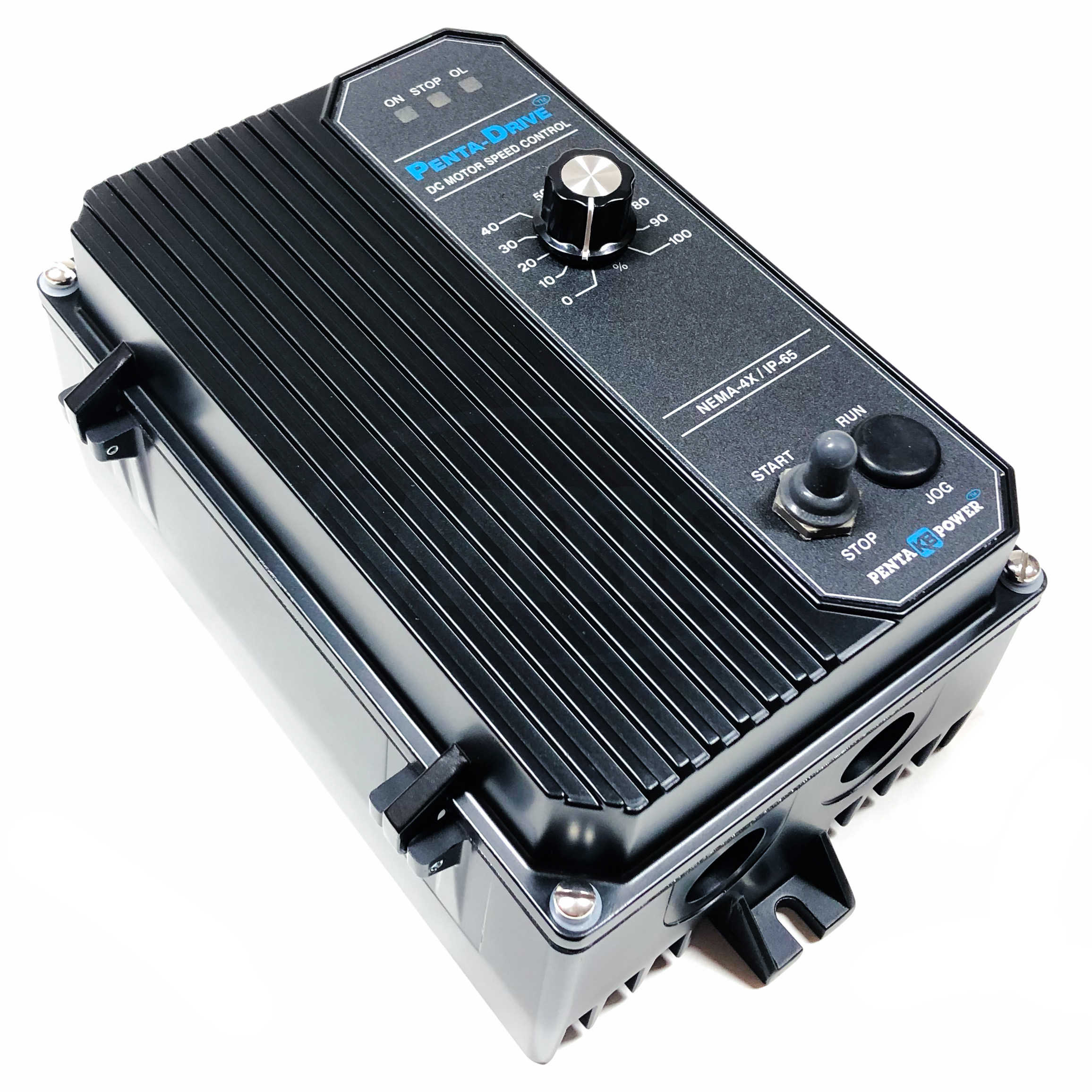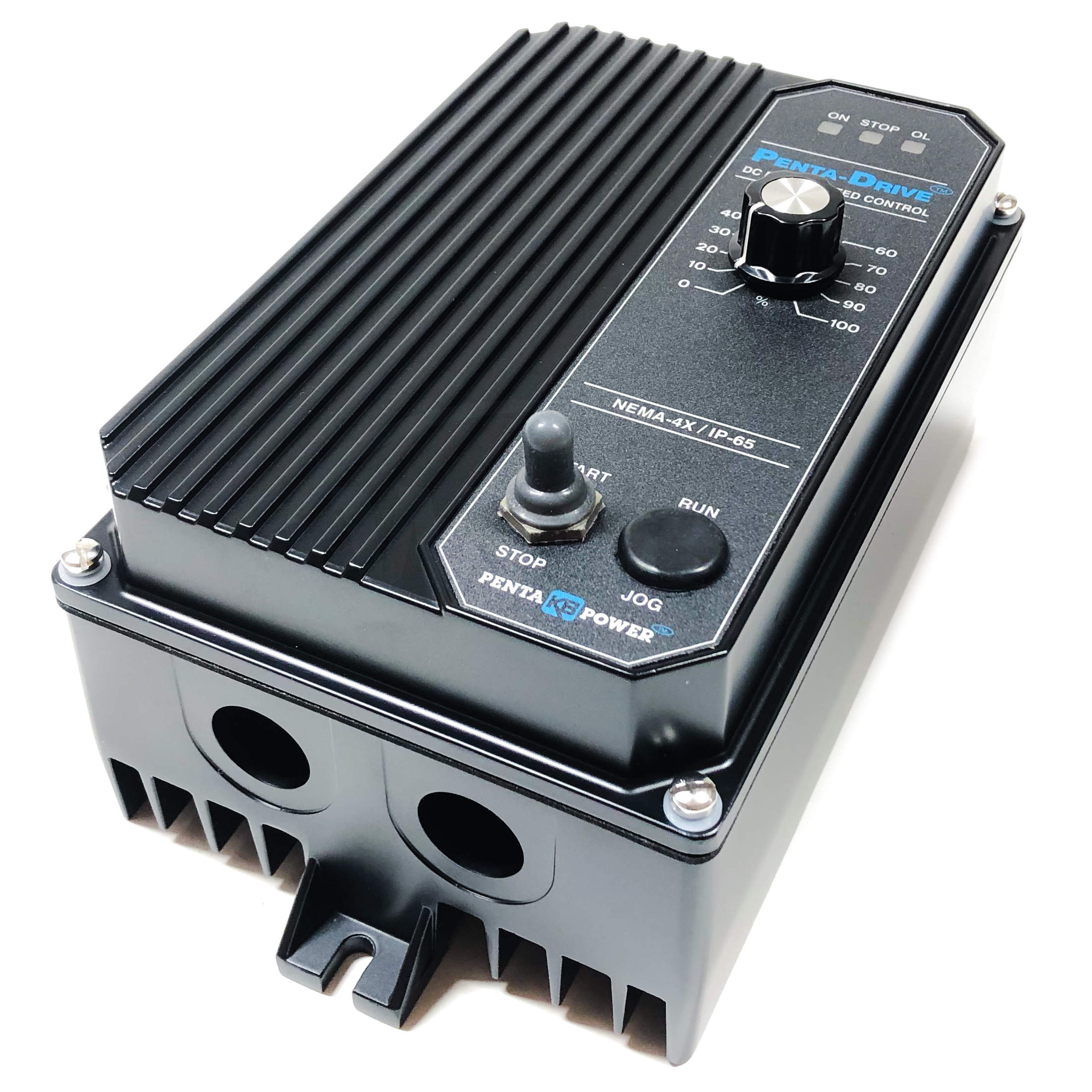 The KBPC Series NEMA-4X (IP-65) SCR DC Motor Speed and Torque Control is designed for applications requiring washdown watertight integrity. Its housing is ruggedly constructed of die cast aluminum which is protected with an acrylic coating for the ultimate in corrosion resistance. All switches are sealed with rubber boots and the main speed potentiometer contains a shaft seal.