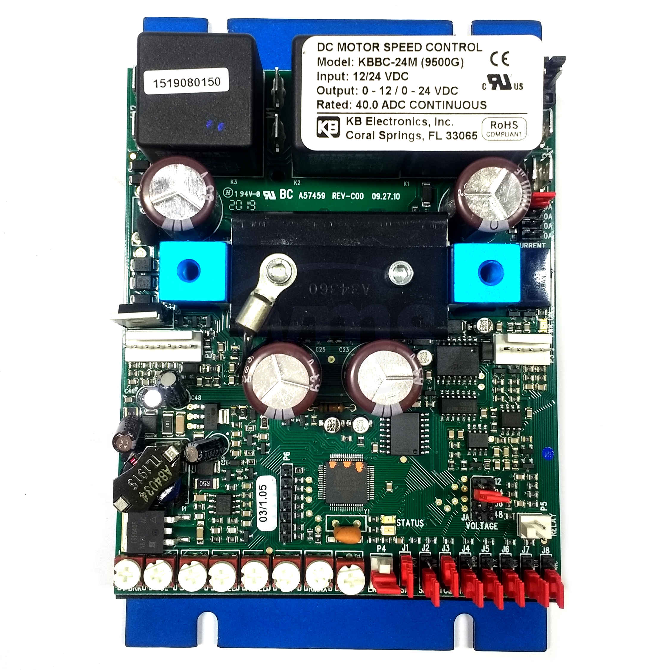 The KBBC can be controlled in several ways, such as single ended or wigwag speed potentiometer and 0 - 5 Volts DC signal following. The controls contain a built-in heat sink that also serves as a mounting base.