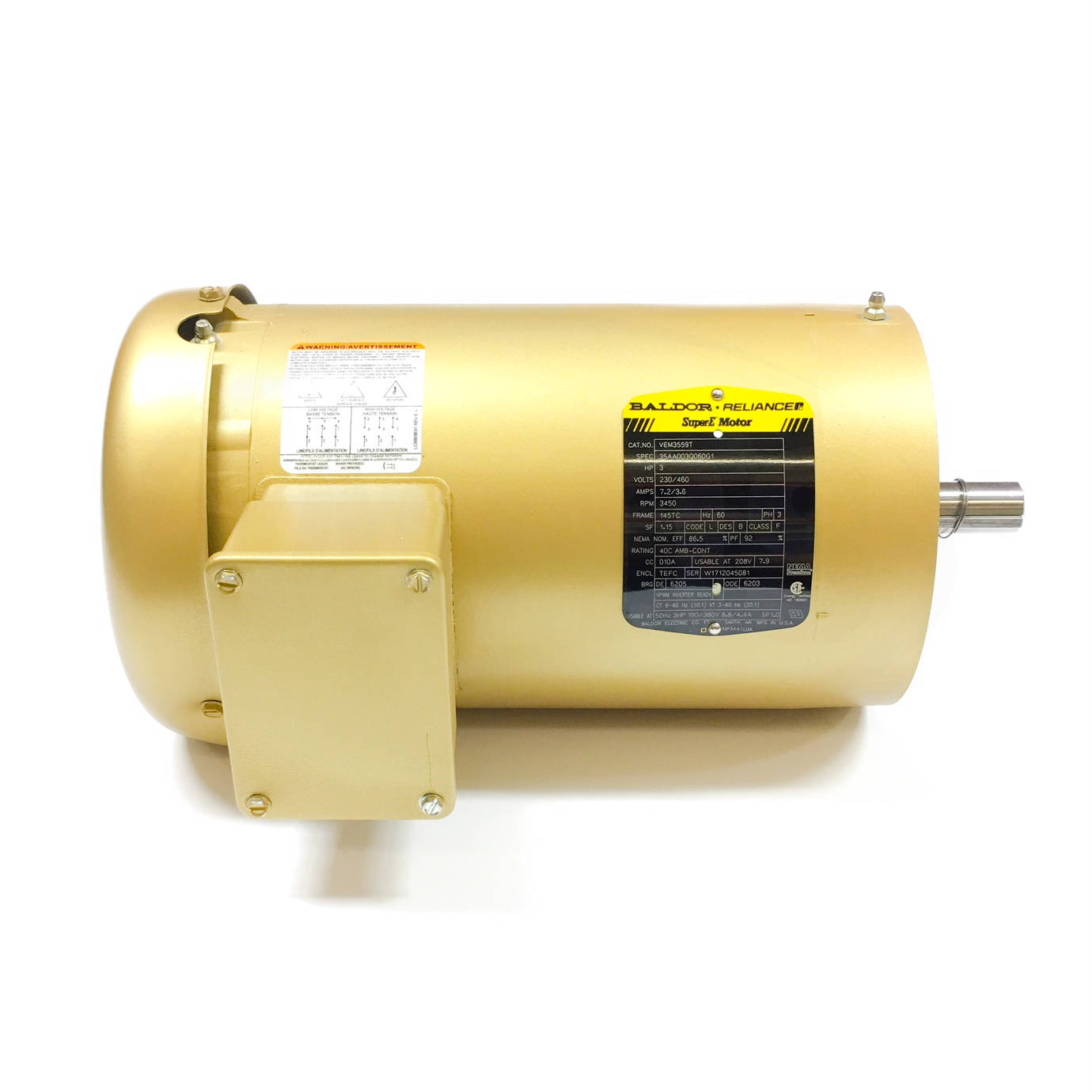 VEM3559T Baldor 3HP Electric Motor, 3450RPMTEFC, 145TC Frame, 230/460V 3-Phase 60Hz, 3532MMFG: Baldor Electric CompanyVEM3559T $982.18 / Each Details...