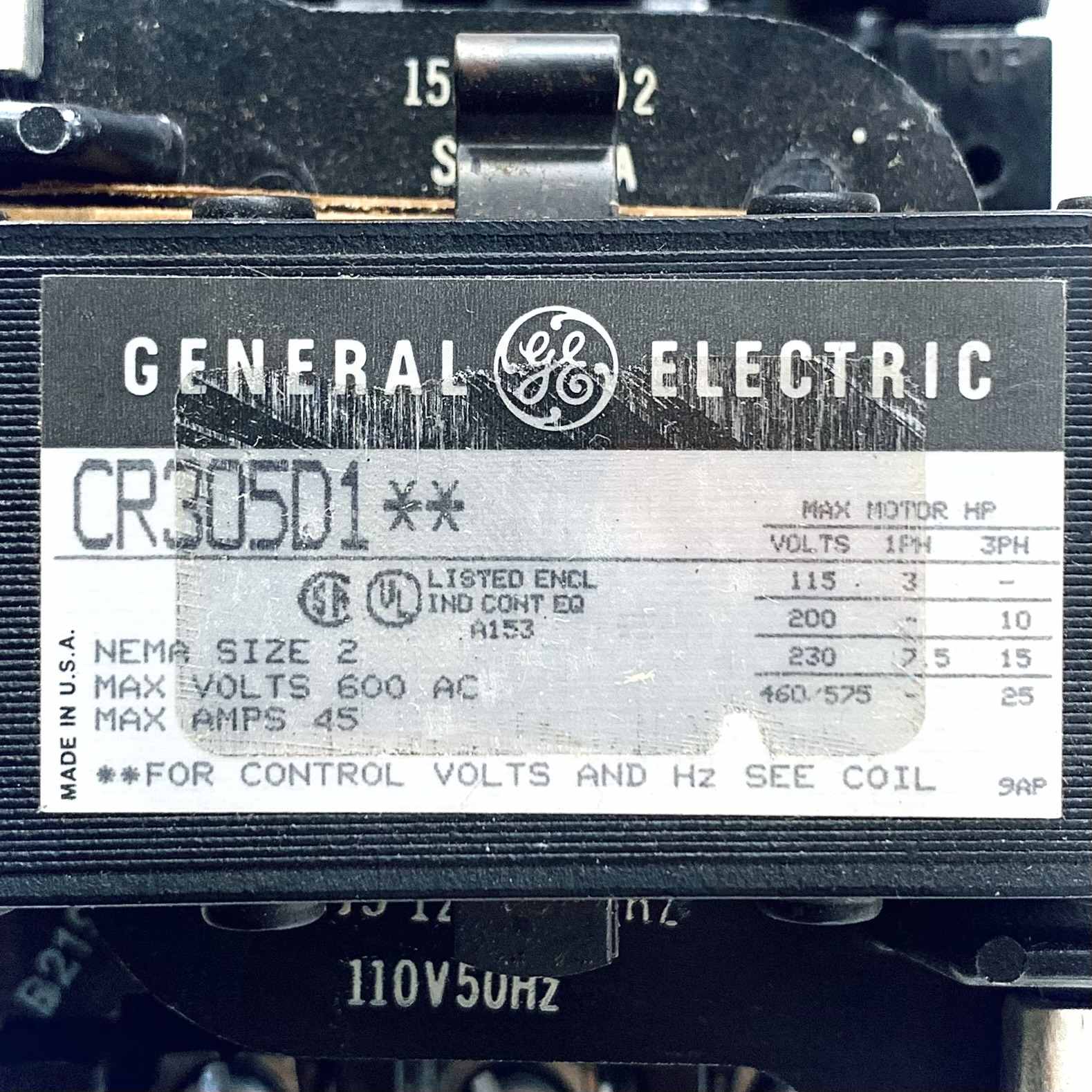 CR305D1 General Electric Contactor, 3 Pole, 45 Amp, 120 Volt Coil