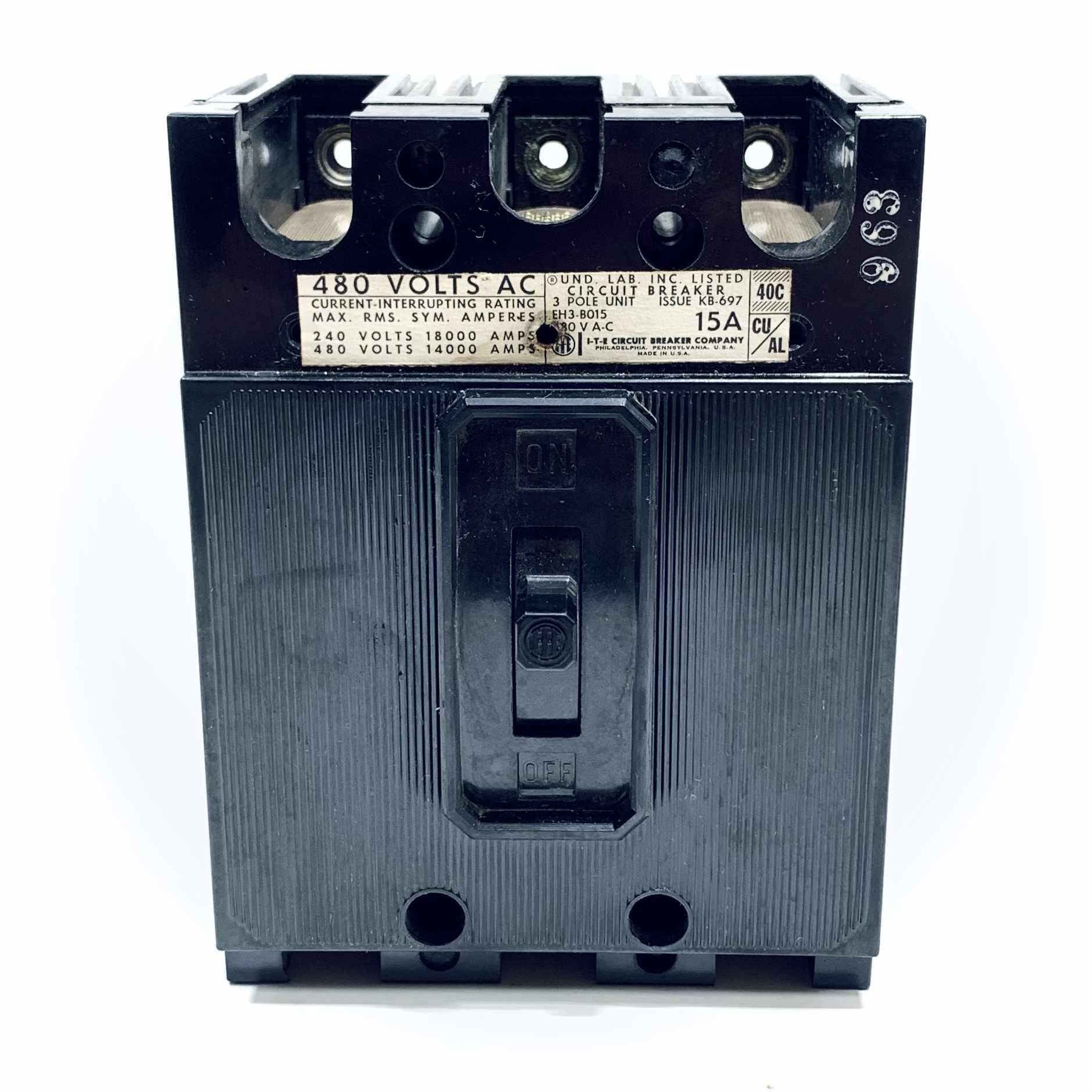 EH3-B015 I-T-E Molded Case Circuit Breaker 3 Pole, 15A, 480Vac
