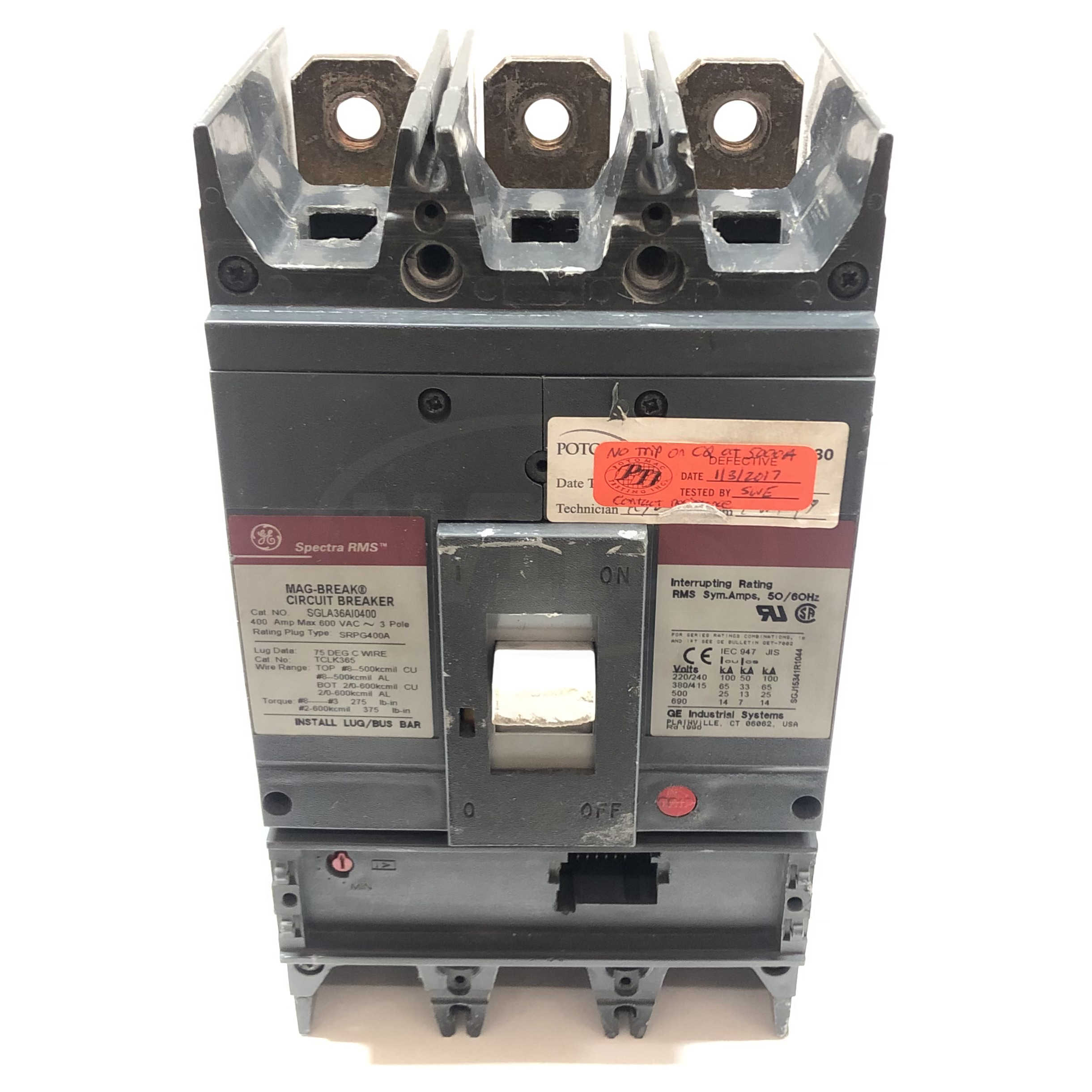 SGLA36AI0400 General Electric Circuit Breaker 400A, 3 Pole, 600Vac, 50/60HzUsedAvailable Stock: 2MFG: General ElectricSGLA36AI0400 $999.97 / Each Details...