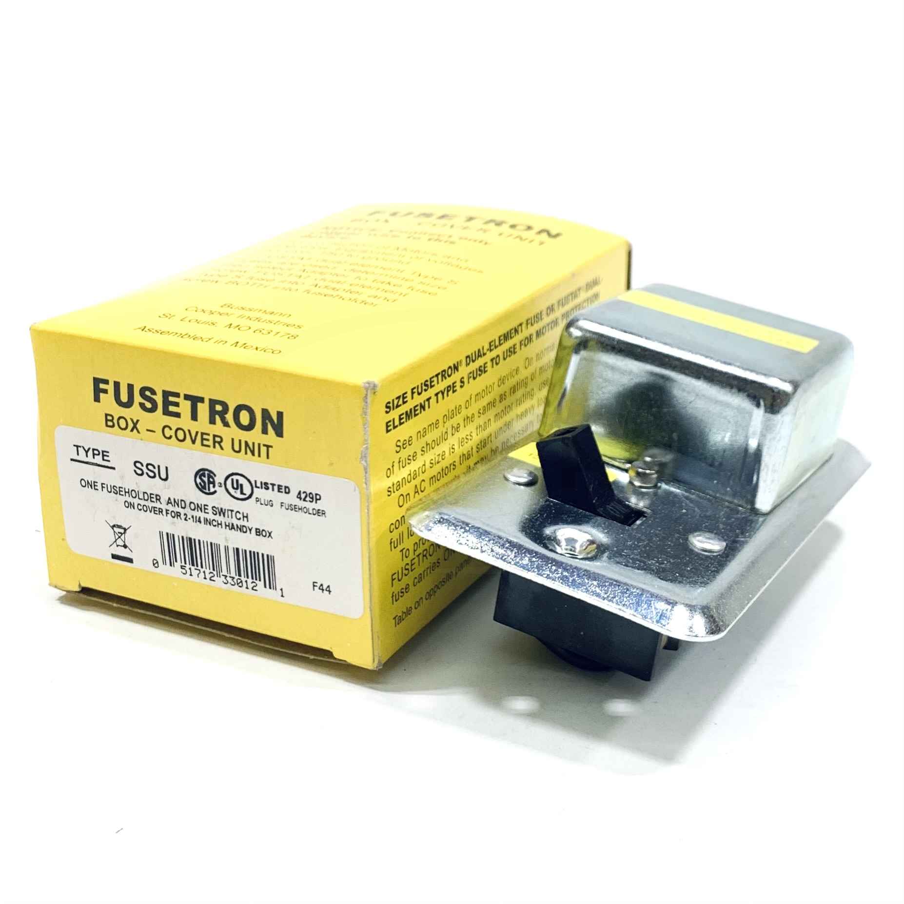 SSU Fusetron Box Cover UnitNew, Surplus StockAvailable Stock: 2MFG: Bussmann Fuse (Cooper Industries)SSU $69.97 / Each Details...