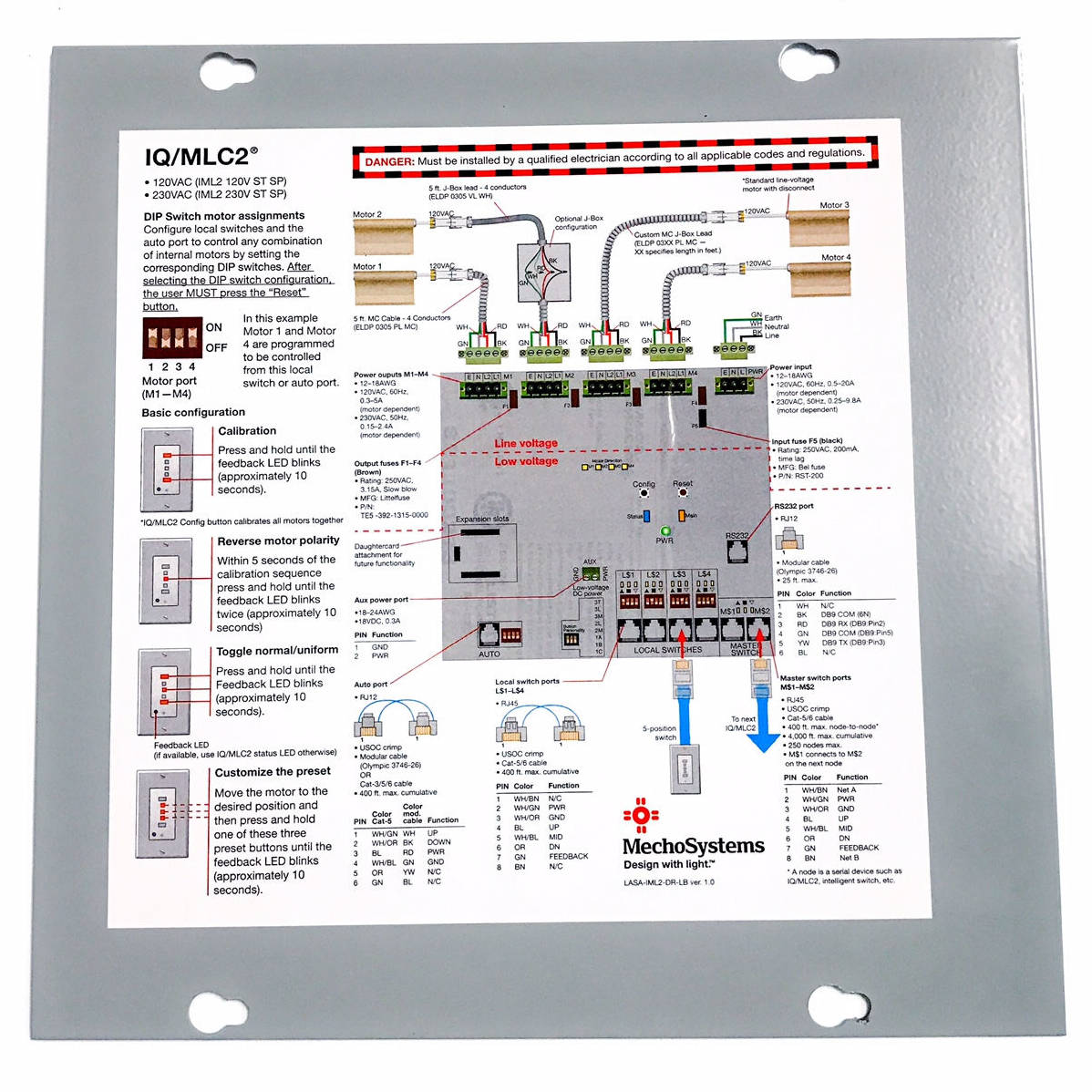 • Master control port enables control, via daisy chaining, of up to 250 IQ/MLC2 units or 1,000 motors (2,000 motors if using the optional 4-Motor Expander Daughter Card).