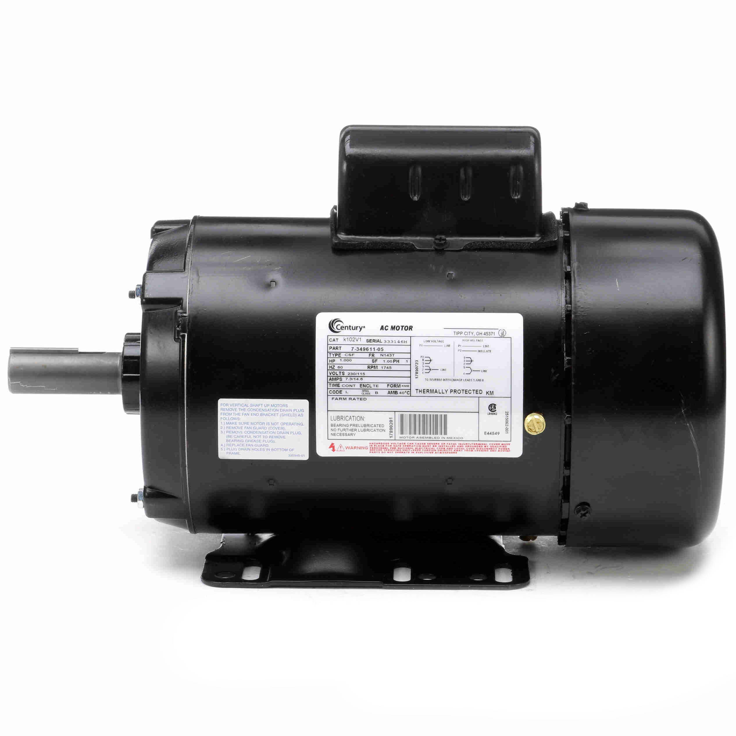 K102V1 Century 1HP Farm Duty Electric Motor, 1800RPM