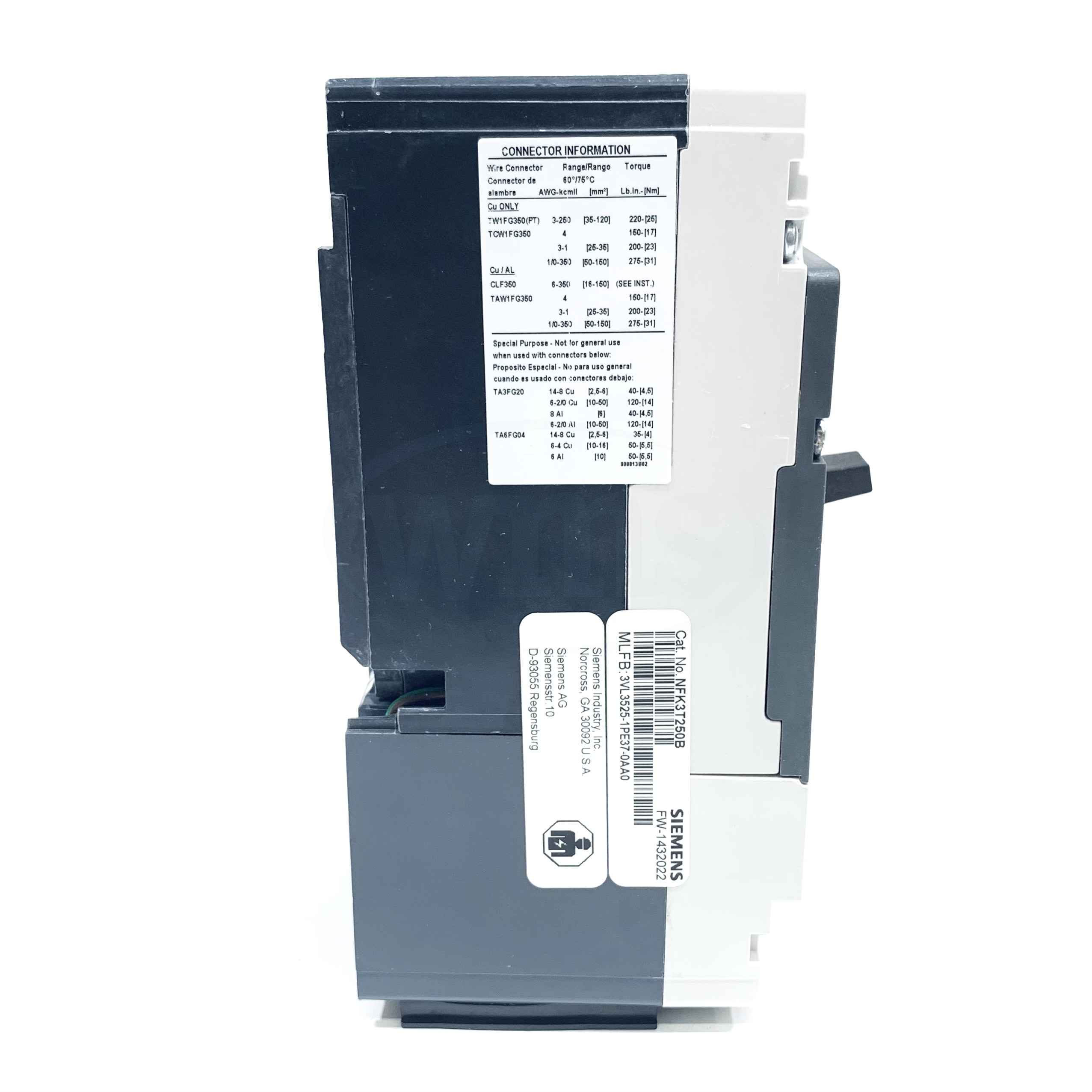 NFK3T250B Siemens VL Circuit Breaker, Class N, 250A, 3-Pole, 35kA@480V-50/60Hz