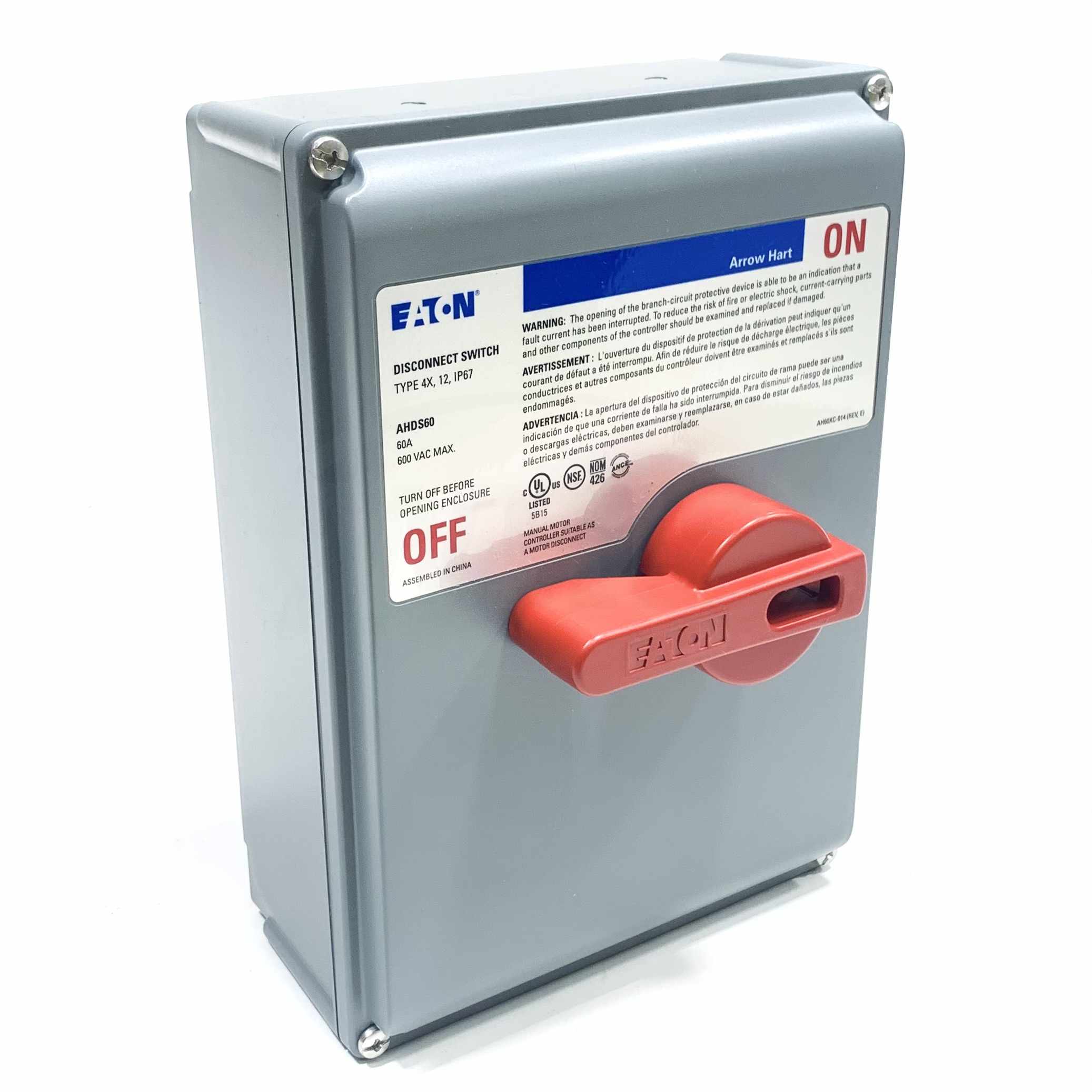 AHDS60 Eaton 60A Disconnect Switch, Type 4XNew, Surplus StockAvailable Stock: 1MFG: EatonAHDS60 $349.97 / Each Details...