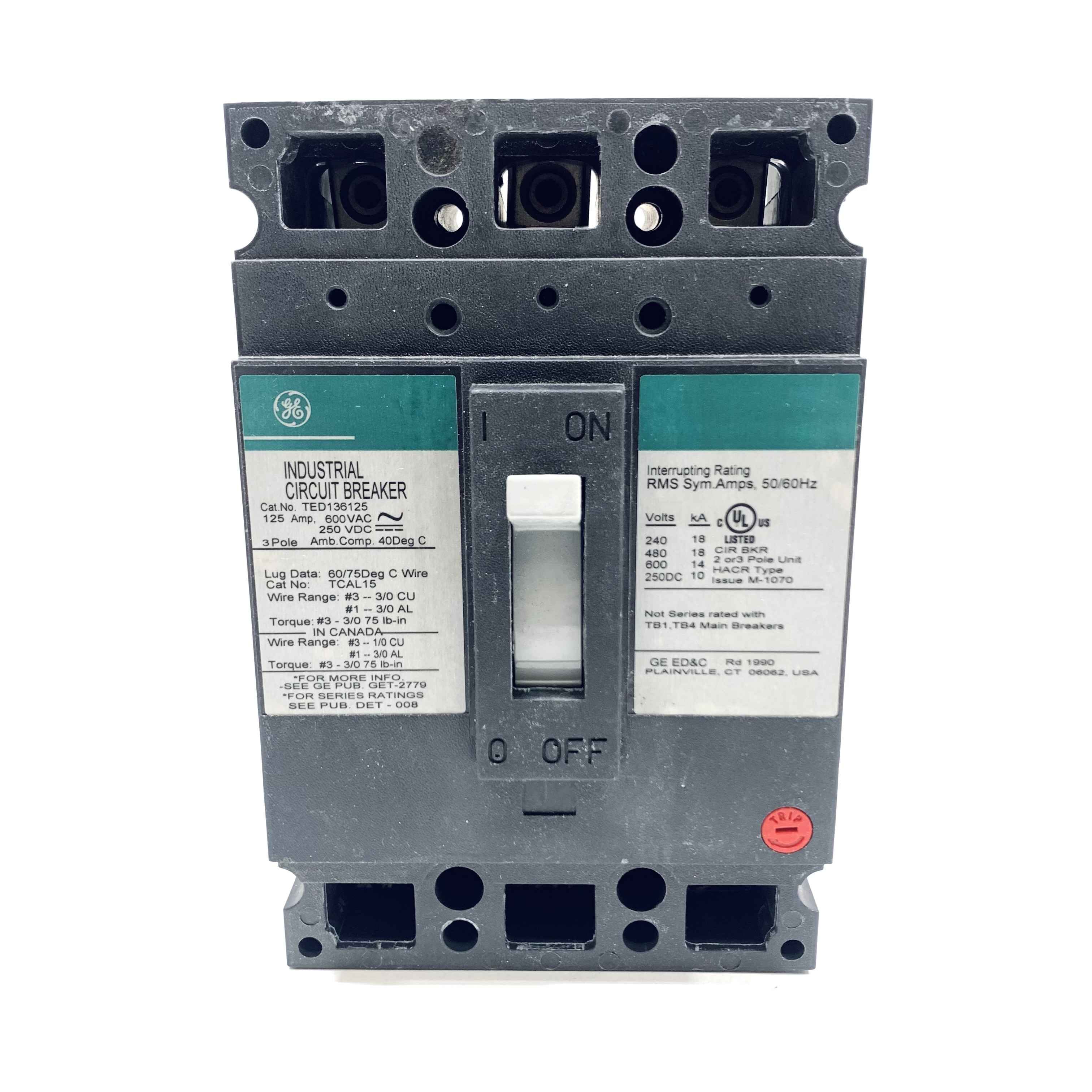 TED136125 GE Industrial Circuit Breaker, 125Amp, 600VAC, 3-Pole