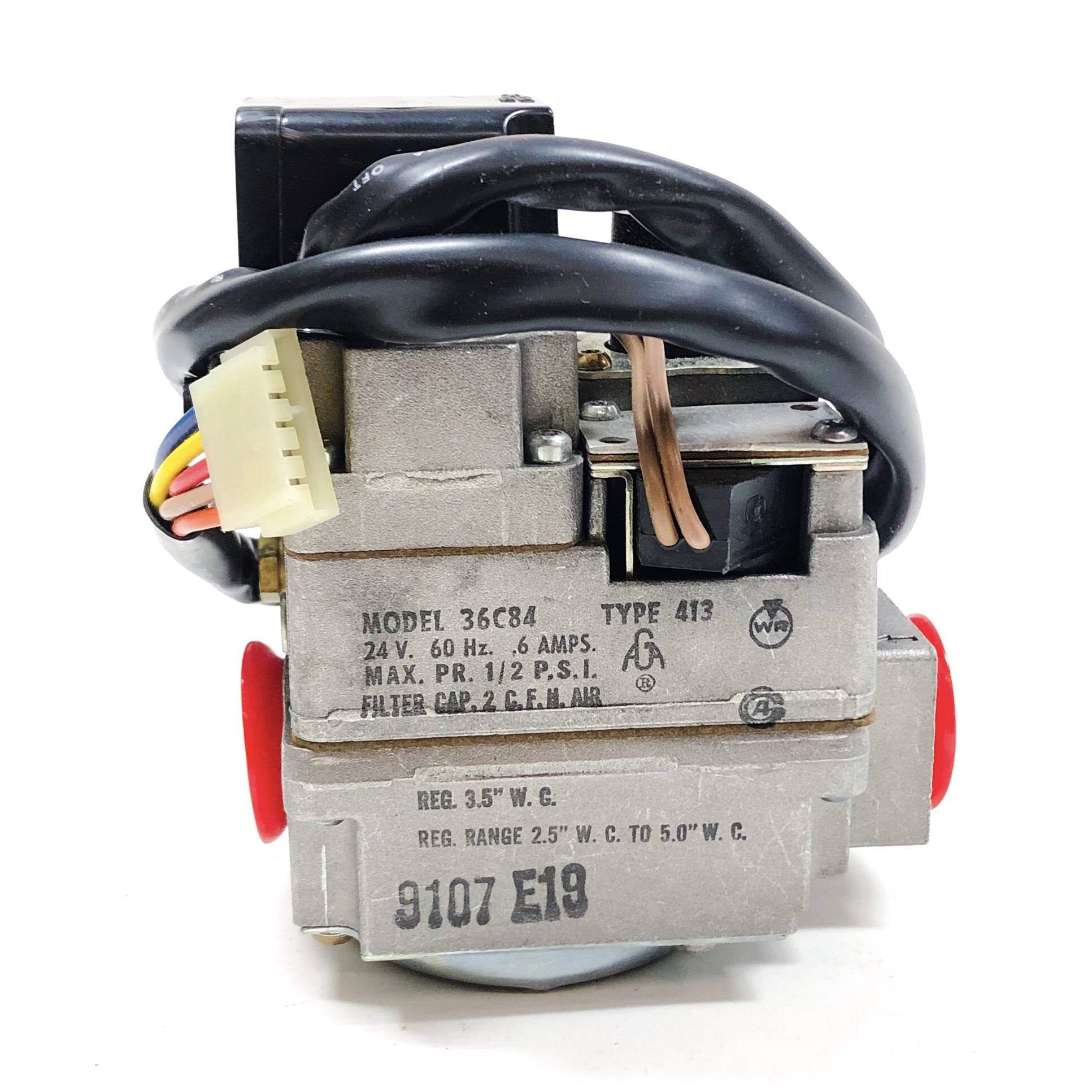 24v. 60 Hz. .6 Amps Max. PR. 1/2 P.S.I. Filter Cap. 2 C.F.H. Air Reg. Range 2.5" W. C. To %.0" W.C.