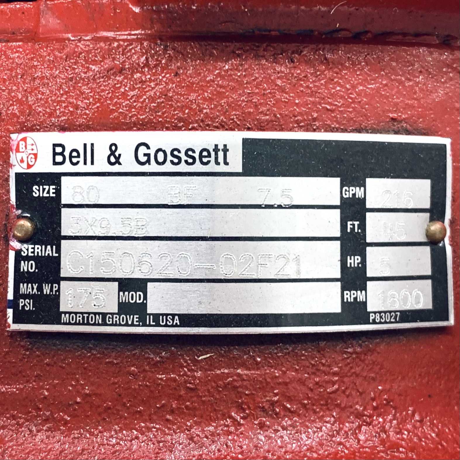C150620 Bell & Gossett Series 80 Pump, 3X9.5B, 5HP,1750RPM, 3Ph, 00518OP3E184JMV