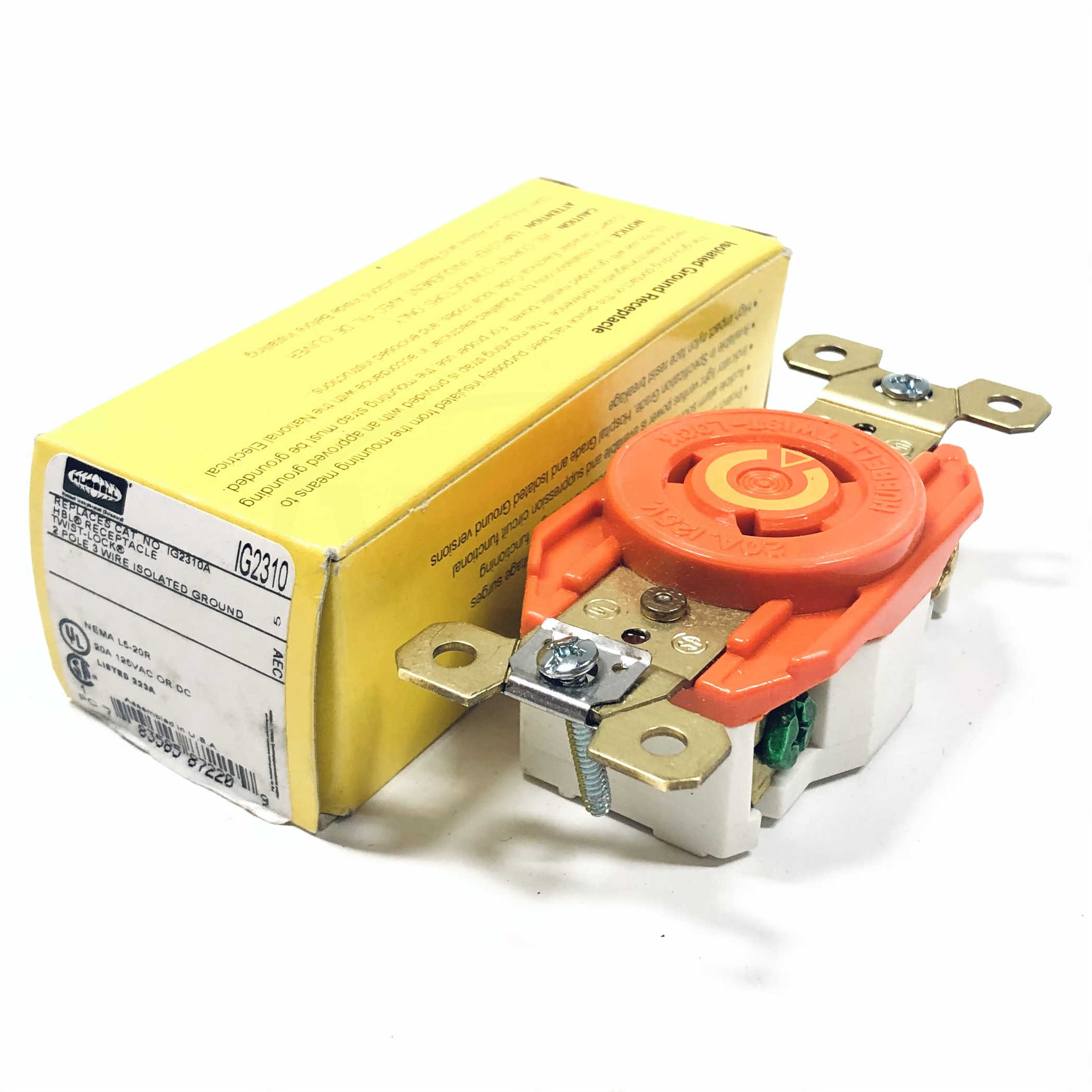 IG2310 Hubbell Twist-Lock Receptacle 2-Pole, 3 Wire Isolated Ground, 20A, 125V