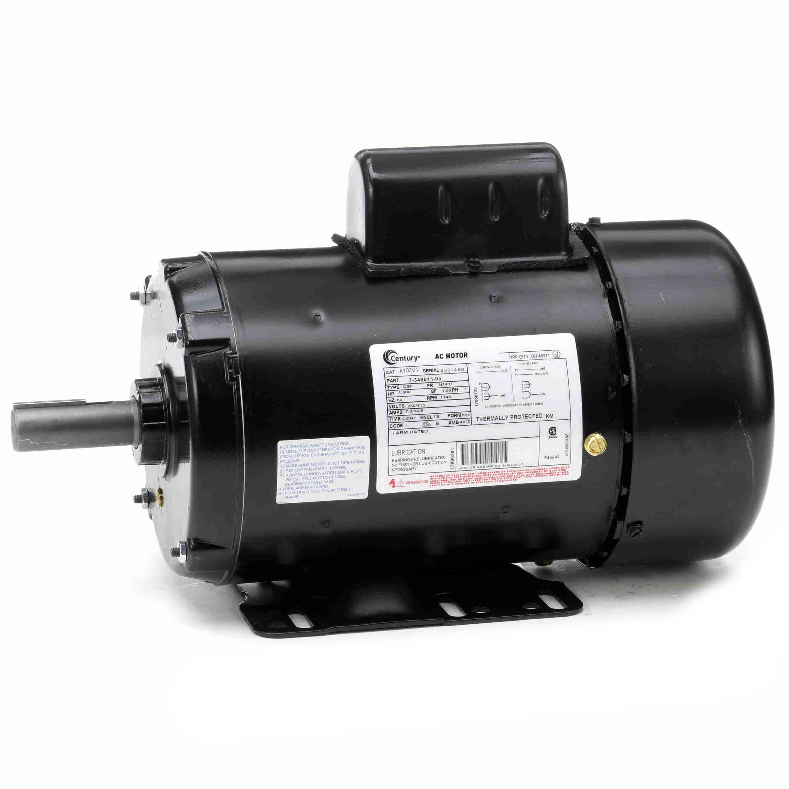 K102V1 Century 1HP Farm Duty Electric Motor, 1800RPM