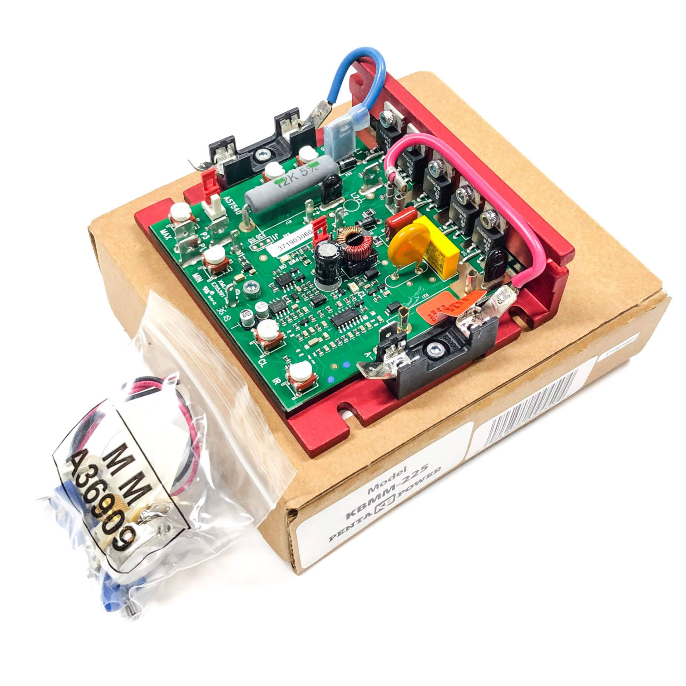 The KBMM™ full-wave variable speed DC motor controls, now with SMT construction, offer the user the ultimate in reliability and performance at an affordable price. The controls contain a unique, super fast, Direct-Fed™ current limit circuit that helps to protect the SCR power bridge against direct shorts 2 . The reliability of the KBMM™ is further enhanced with the use of high-surge, 25A SCRs and AC line and armature fusing 5 . The KBMM™ is fitted with KB’s exclusive Plug-in Horsepower Resistor® 5 . It eliminates the need for recalibrating IR Comp and Current Limit when the control is used on various horsepower motors. In addition, the rating of the control can be extended to 1.5 HP at 115V and 3 HP at 230V by the use of KB’s auxiliary heat sink. Model KBMM225 also allows operation of 90 VDC motors.